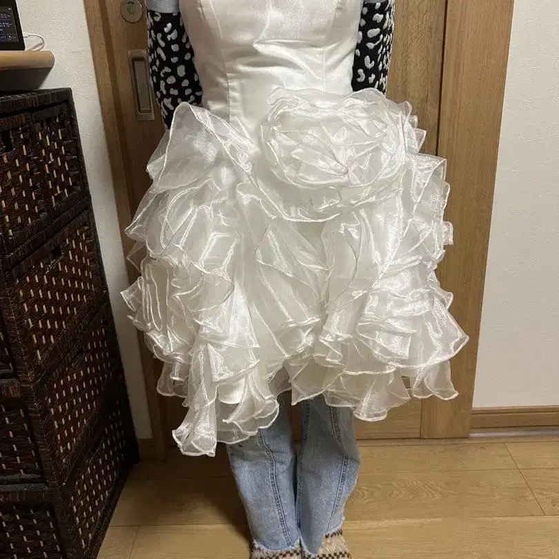 웨딩 드레스 드레스 미니 기장 화이트 2차 모임 웨딩 사진
