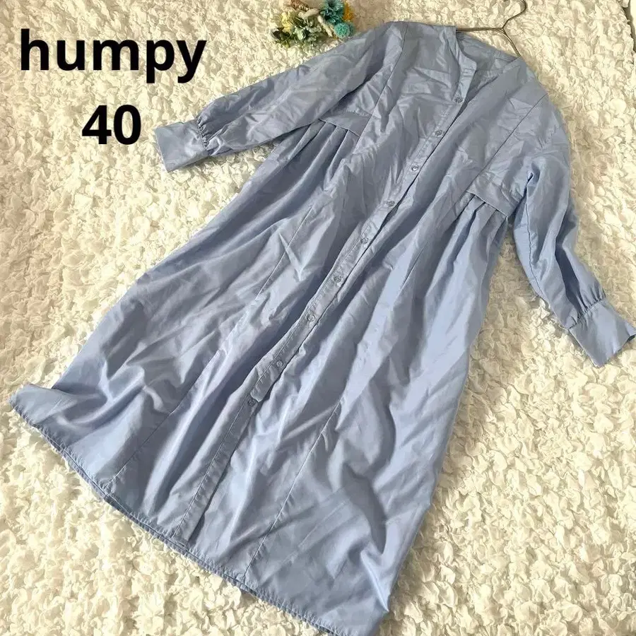 햄피 롱 셔츠 노카라 원피스 플리츠 체형 커버 라이트 블루 40
