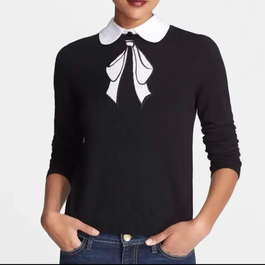 앨리스 앤 올리비아 리본 포함 블랙 니트 스웨터