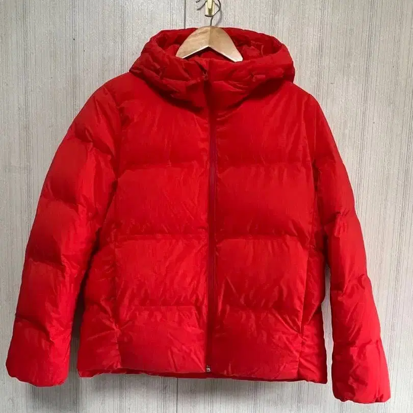 UNIQLO 심리스 후드 부착 레드 다운 자켓 M