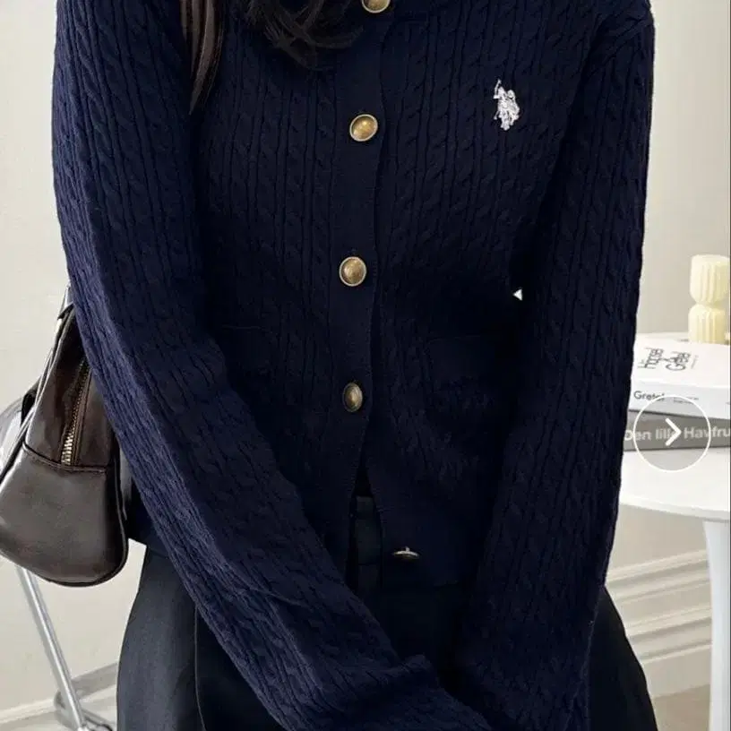 네이비 케이블 니트 가디건