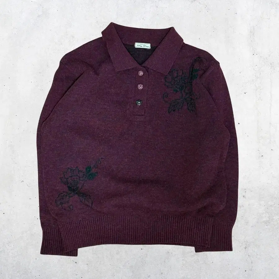 빈티지 버건디 꽃무늬 자수 폴로 니트