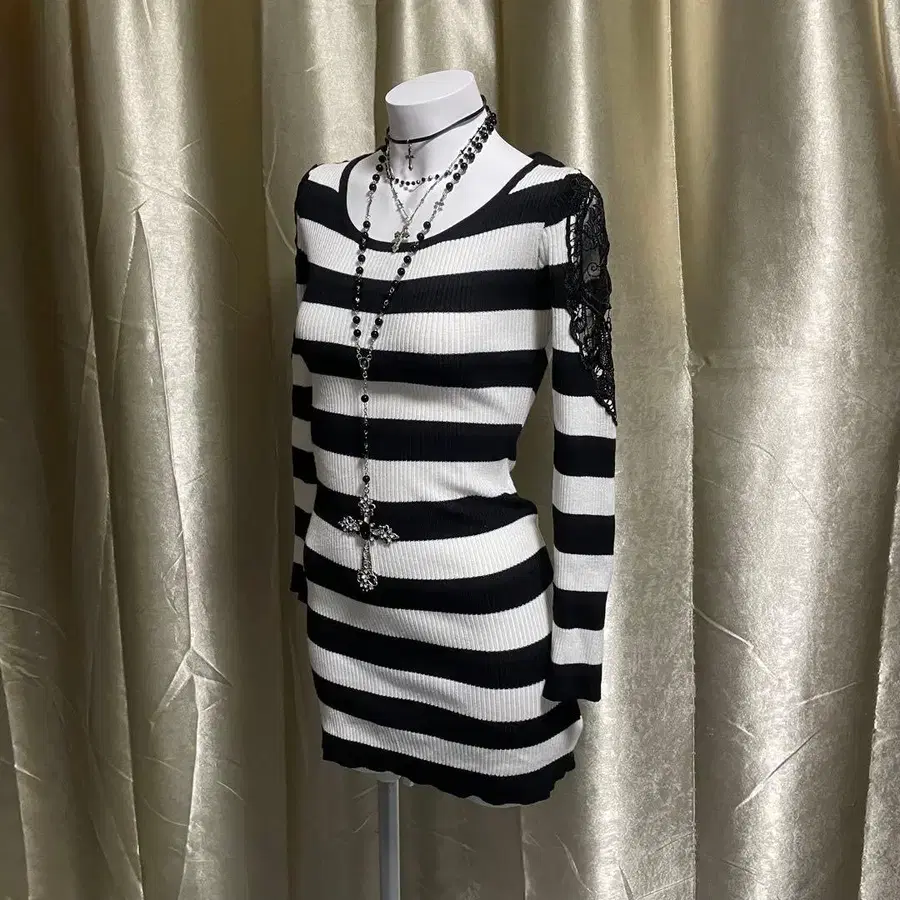 보더 무늬 원피스 타이트 레이스 헤이세이 갸루 y2k coquette