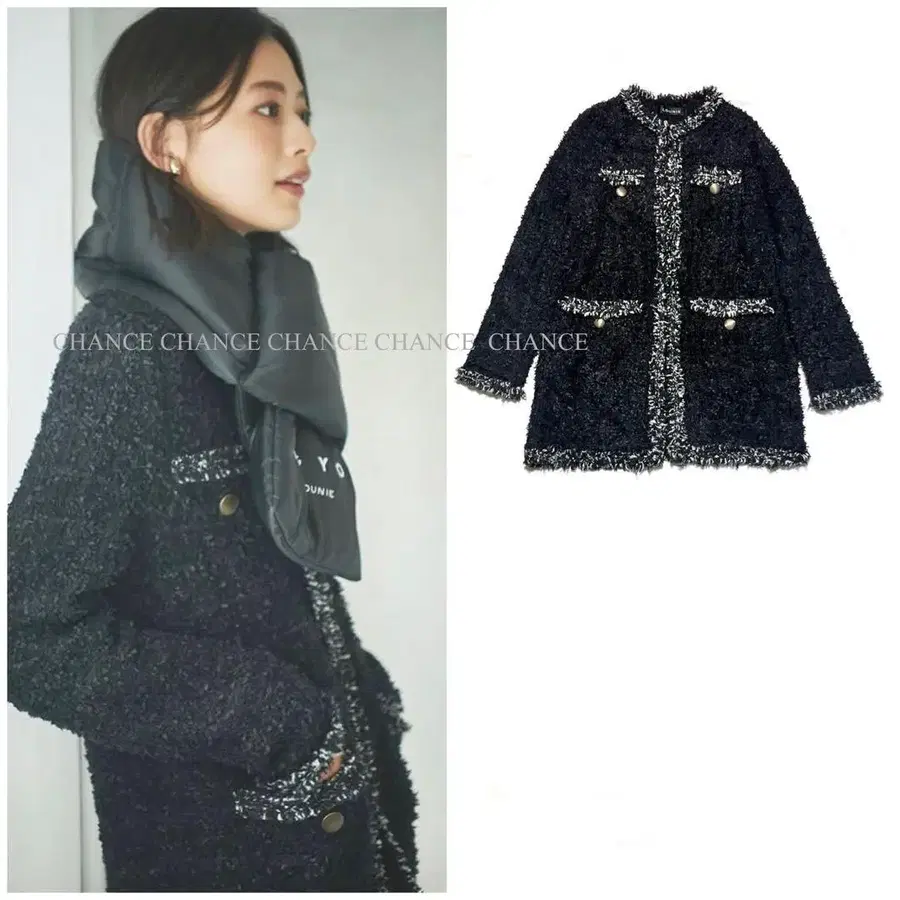 새상품급 루니 트위드 니트 자켓 블랙 골드 버튼