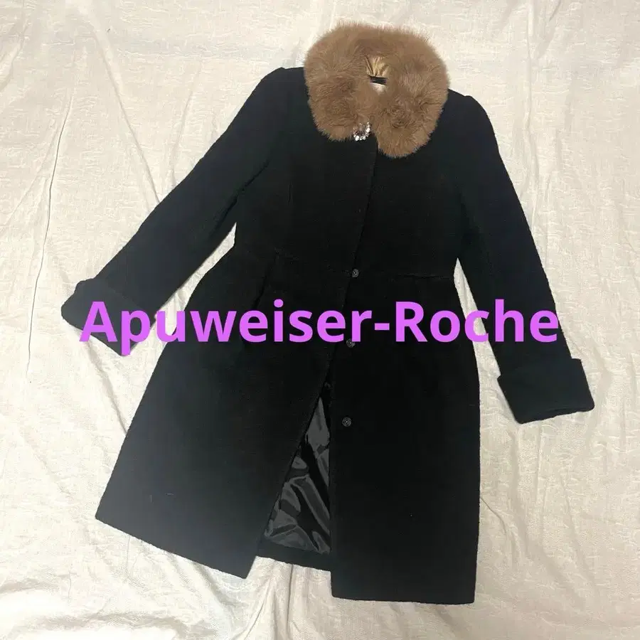 Apuweiser-Roche 블랙 퍼 옷깃 비쥬 장식 롱 코트 택 포함