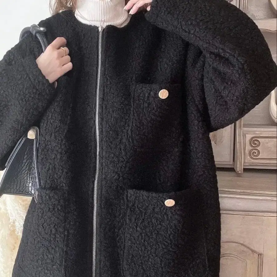 mily bilet 노카라 코트 푸들 코트 지퍼 코트
