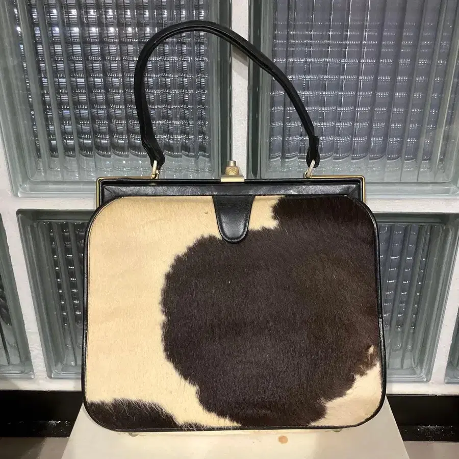 소가죽 핸드백 블랙 화이트 패턴 중형