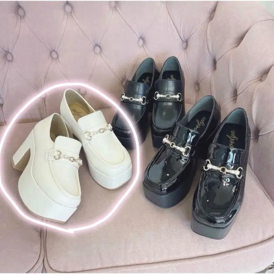 evelyn 펄 비트 슈즈 M 사이즈 (통굽, 로퍼, 화이트)