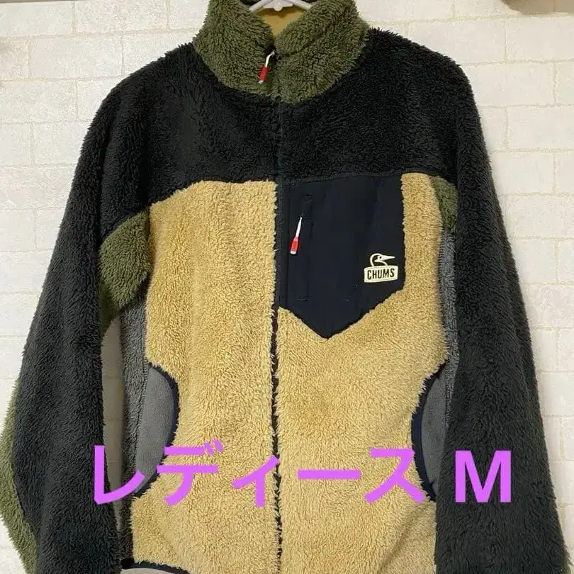 CHUMS 플리스 자켓 M 블랙/그린/베이지