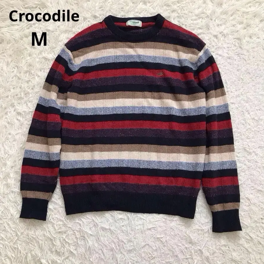 크로커다일 남성용 니트 스웨터 남성용 M 멀티 보더 울 혼방