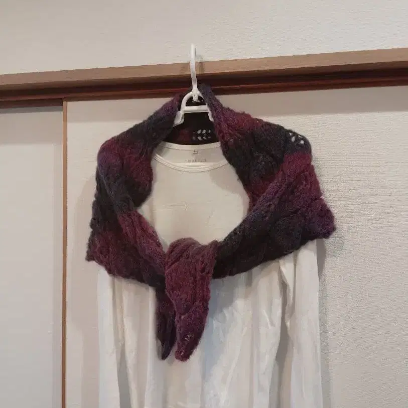 대바늘 뜨기 삼각형 숄 나뭇잎 무늬 적자색 염색 그라데이션