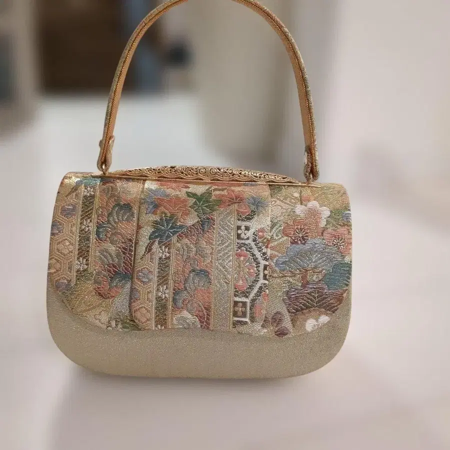 일본 의류용 백 골드 컬러 꽃무늬 자수