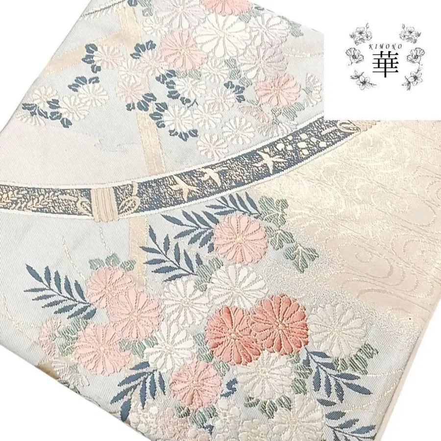 화려한 후쿠로 오비 꽃무늬 금 x 은