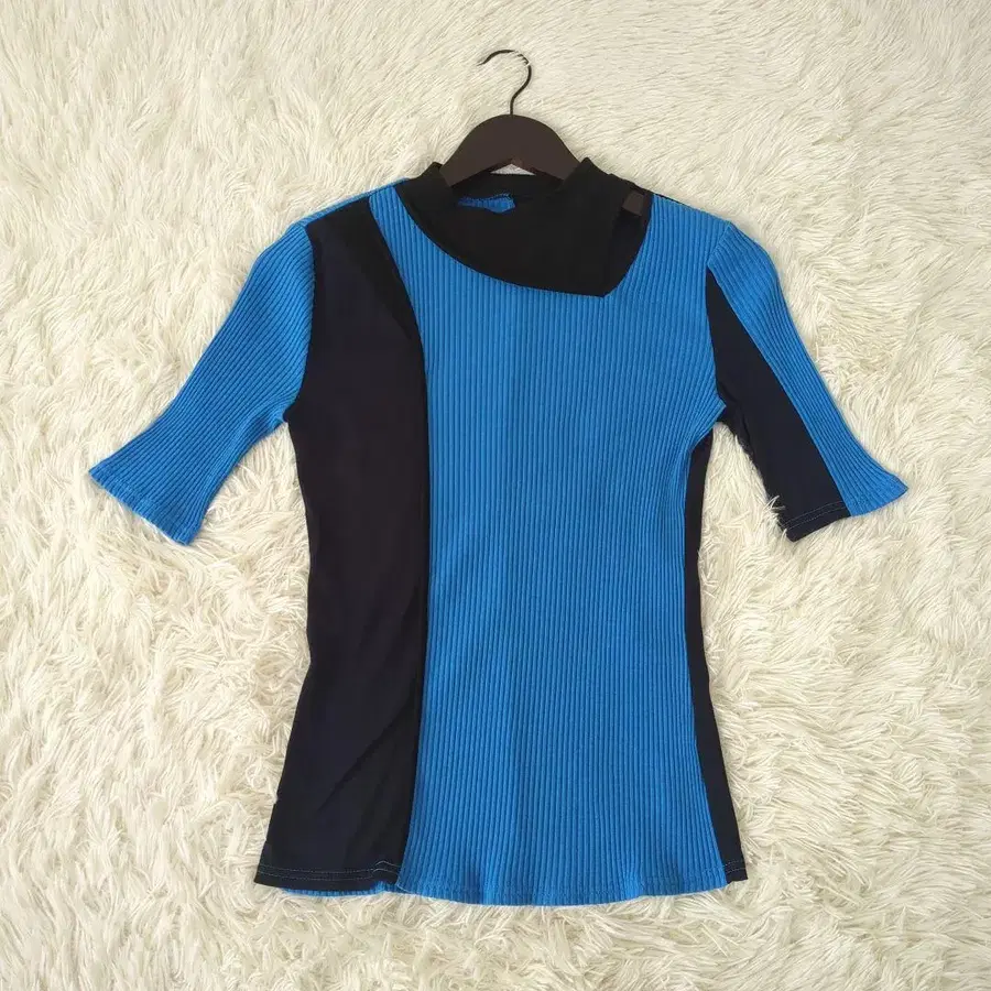 특징: 이소재 블로킹 / 어깨 슬릿 / 리브 절개