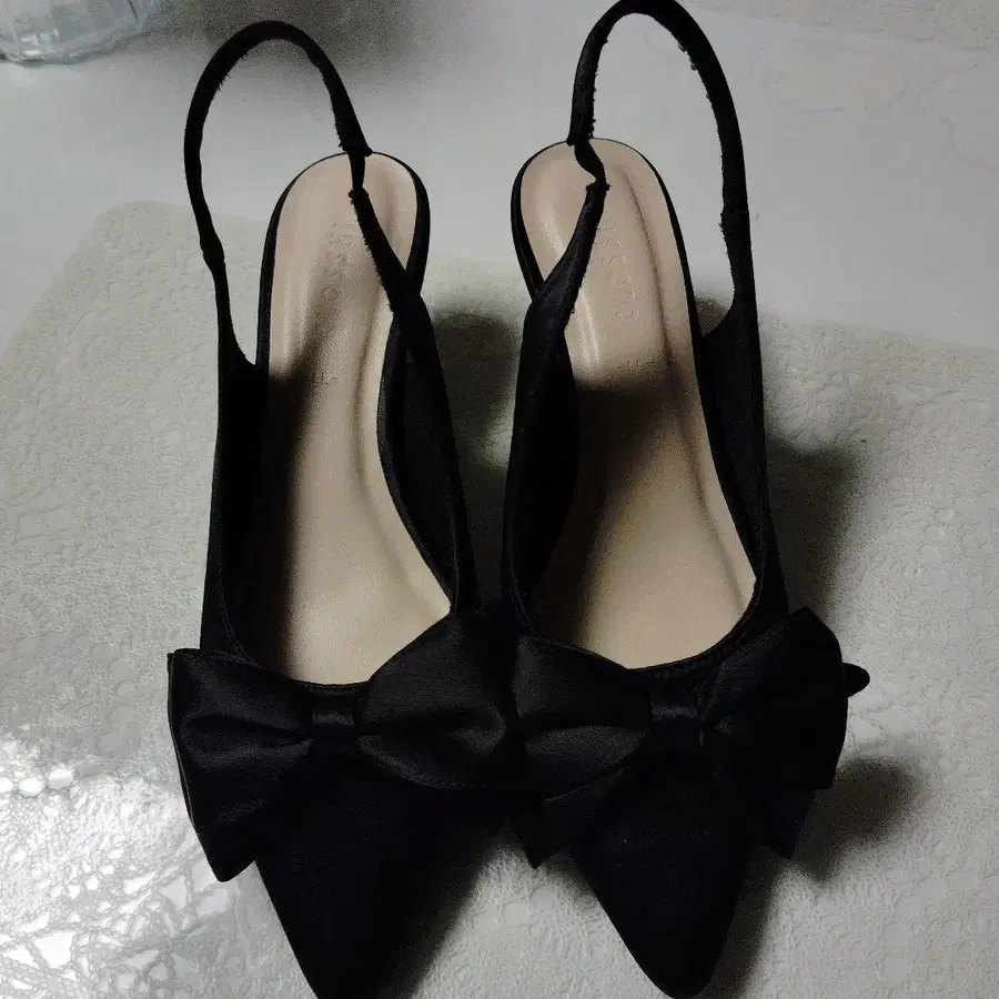 블랙 슬링백 펌프스 리본 포함