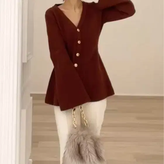 anuans 허리 쉐이프 페 플럼 니트 자켓