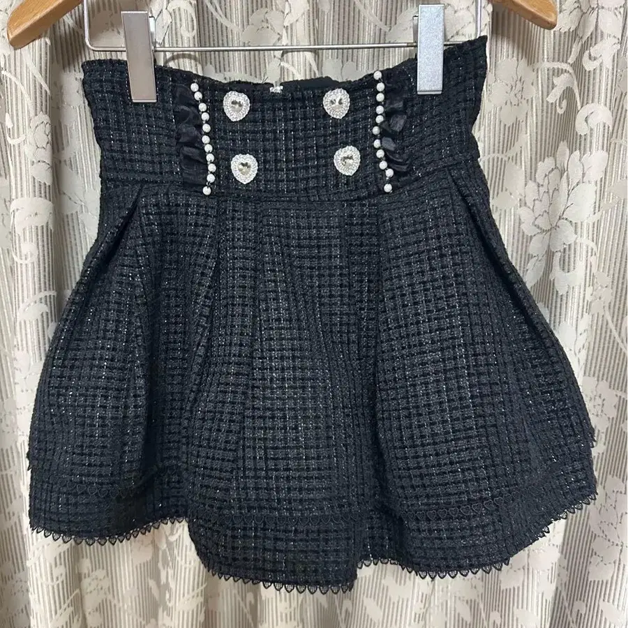 NoGenki 반짝이 트위드 스커트 블랙
