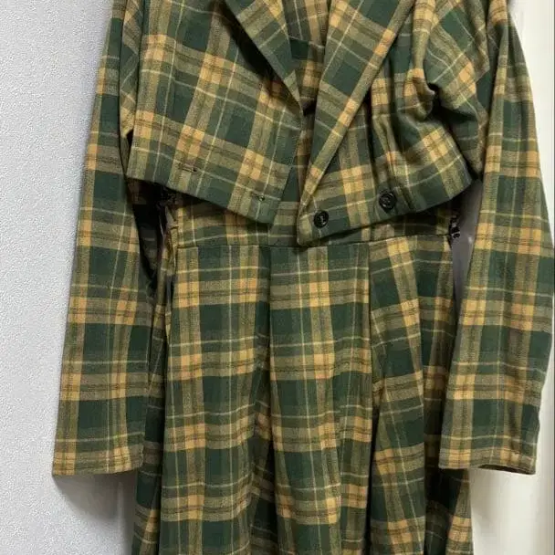 그린과 노랑 체크 무늬 셋업