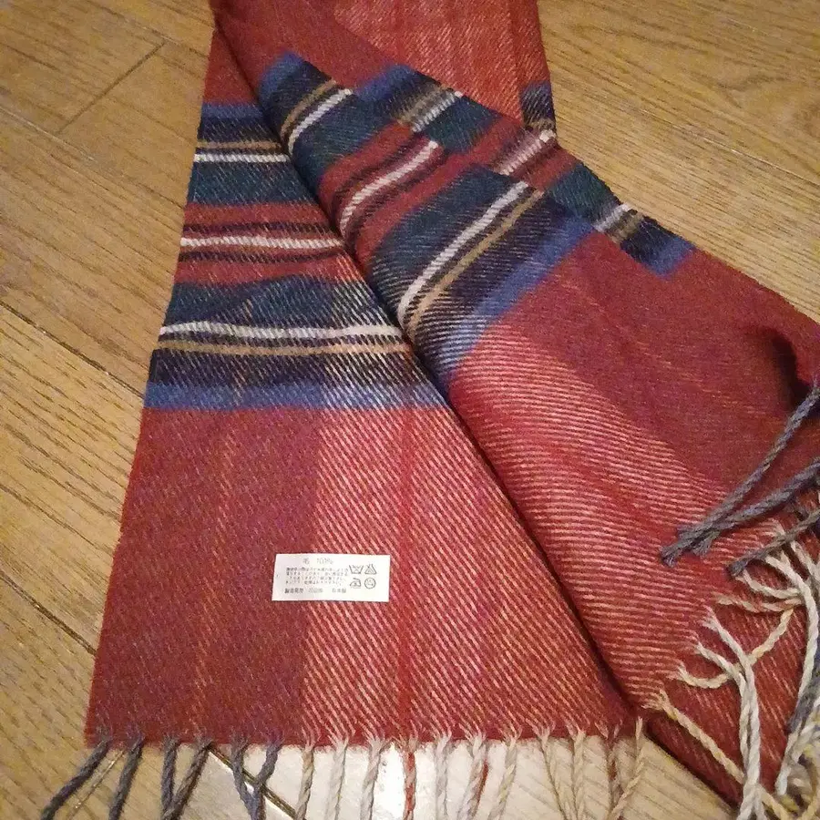미사용, 일본제 울 100% 빨간색 계열 체크 무늬 머플러 남녀,
