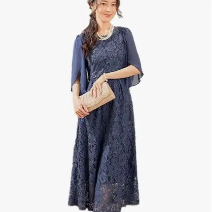 엑스 파티 드레스 레이스 소매 있음 롱 기장 체형 커버