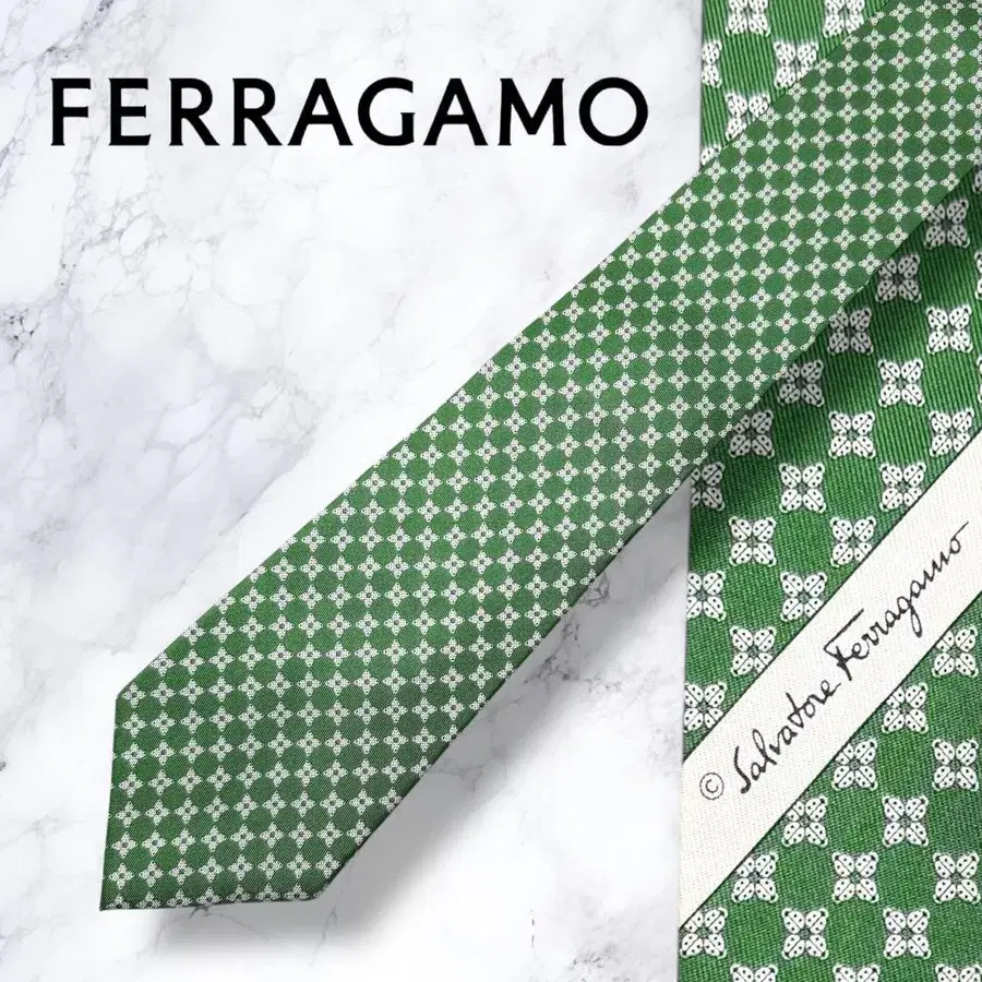 고급스러운 그린 컬러를 베이스로, 페라가모다운 세련된 올 패턴 디자인이 돋보이는 제품입니다.