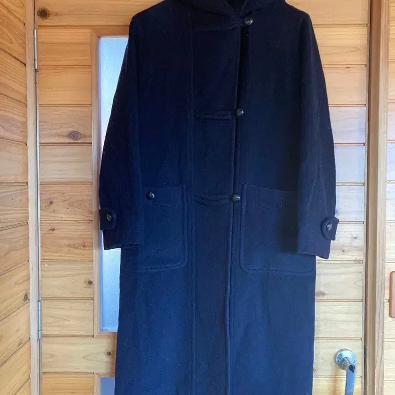 네이비 후드 부착 더플 코트