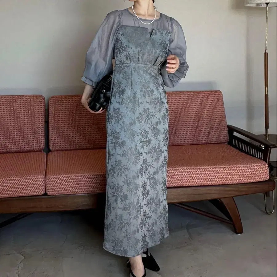 [ 포멀 ] 자카드 뷔스티에 도킹 원피스