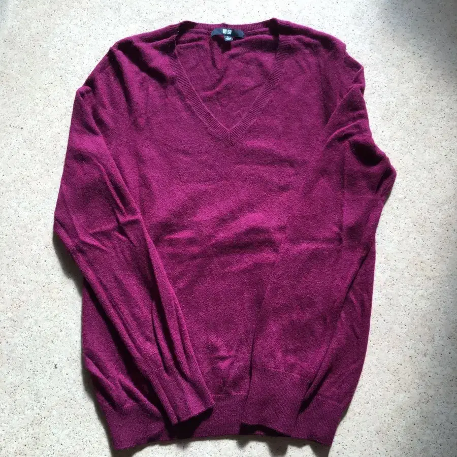 V넥 스웨터 캐시미어 100% 퍼플 계열 팥색