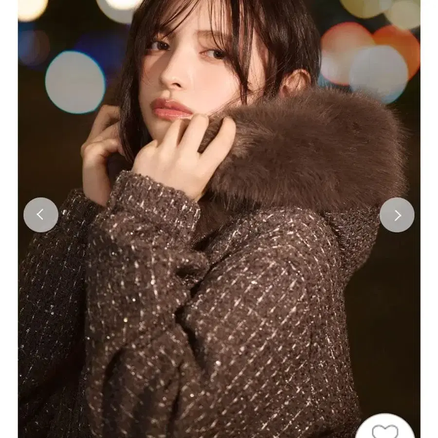 [ 풍성한 후드 퍼와 반짝이는 트위드 원단이 화려한 트위드 블루종 ]