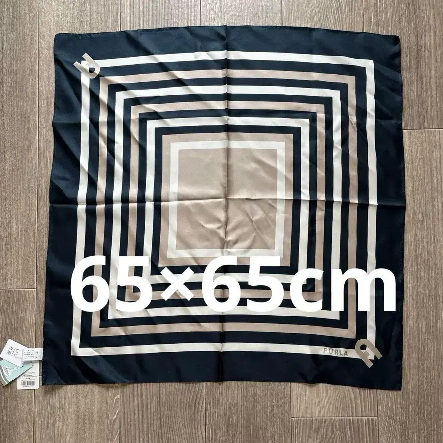 택 포함 미사용 새상품 훌라 실크 프린트 스카프 네이비&베이지