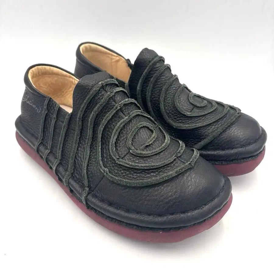 미사용 에스타시온 우즈마키 슬립온 [ L ] 23cm 블랙 가죽