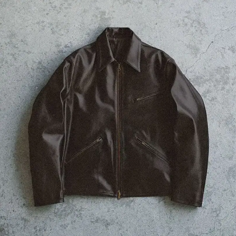 LIDNM 빈티지 워시드 레더 집 L 사이즈