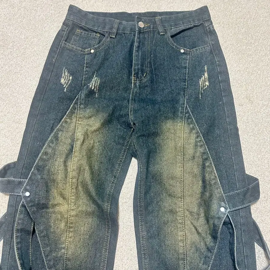 데미지 가공 사이드 스트랩 데님 카고 팬츠 y2k 헤이세이 그런지 한국