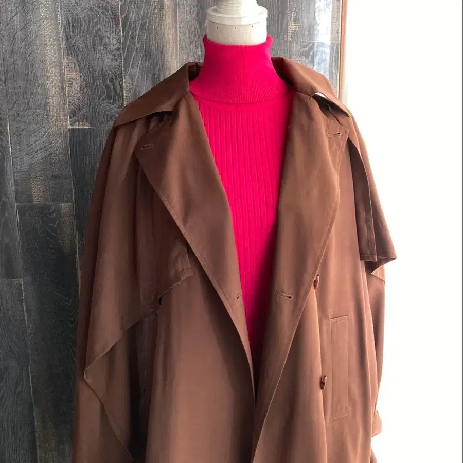 AMERI 케이프 코트 트렌치 코트 망토 포함 2겹 브라운