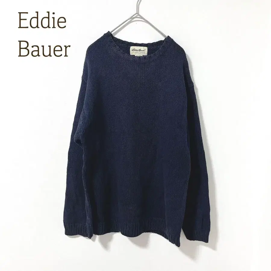 에디 바우어 니트 크루넥 코튼 긴팔 (XS) 네이비 무지