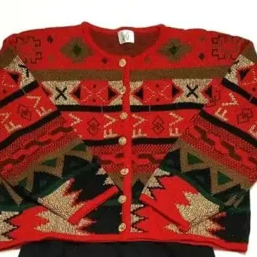 여성용 니트 가디건 노카라 자켓 골드 버튼 크리스마스