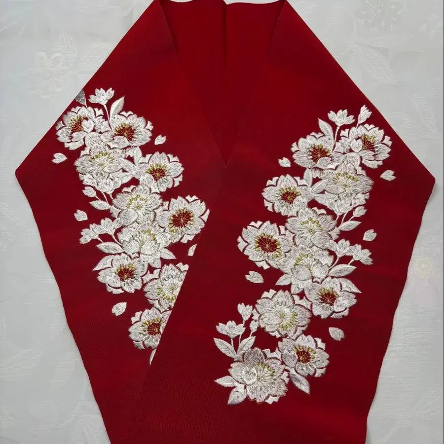 미사용 t-036 장식용 깃 자수 후리소데 성인식 벚꽃 가득 빨간색