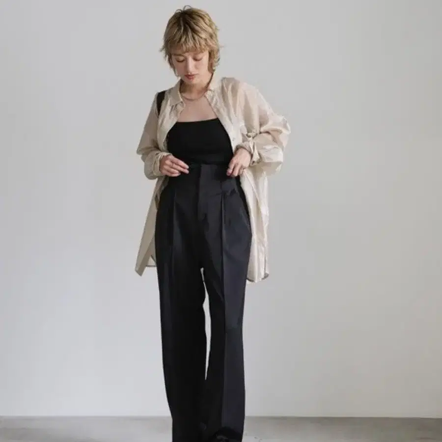 [ 새상품급 ] 하이웨스트 턱 슬랙스 센터 프레스 블랙