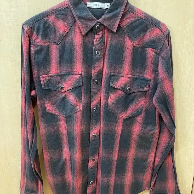 MIDAS 빨검 체크 긴팔 셔츠 M