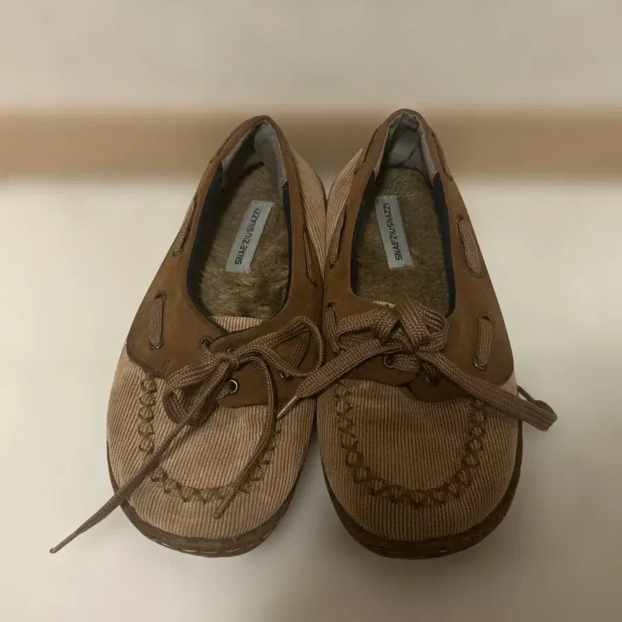 새상품급 브라운 코듀로이 모카신 펌프스 신발 오샤레 브라운