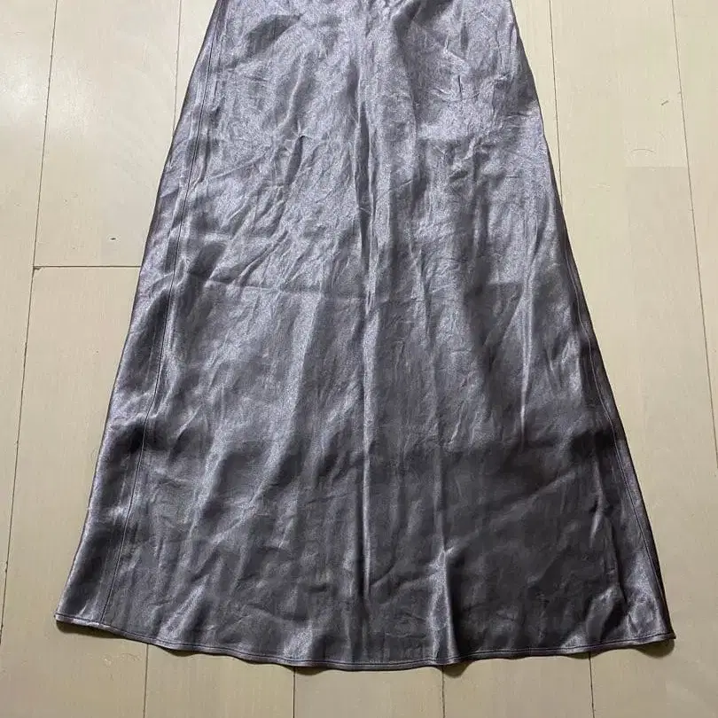 그린 라벨 릴랙싱 실버 새틴풍 롱 스커트
