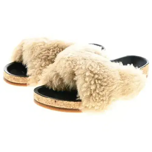 • 퍼 달린 트위드 슬리퍼 샌들 골드
