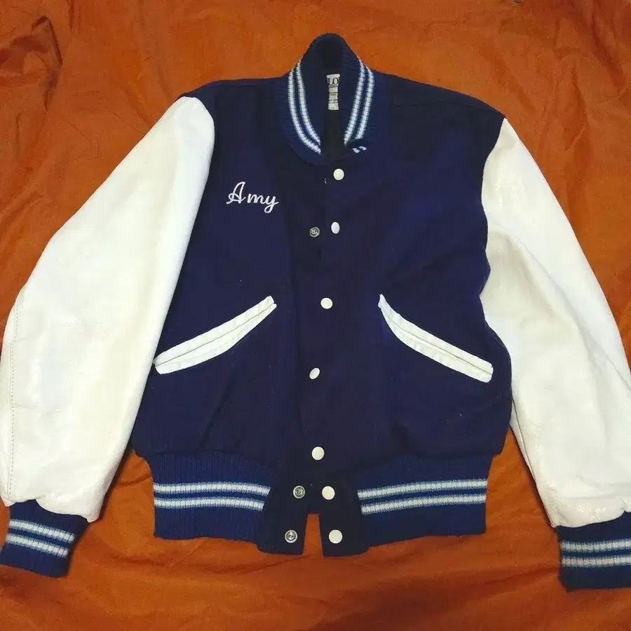 네이비/화이트 DeLONG 바시티 자켓 40
