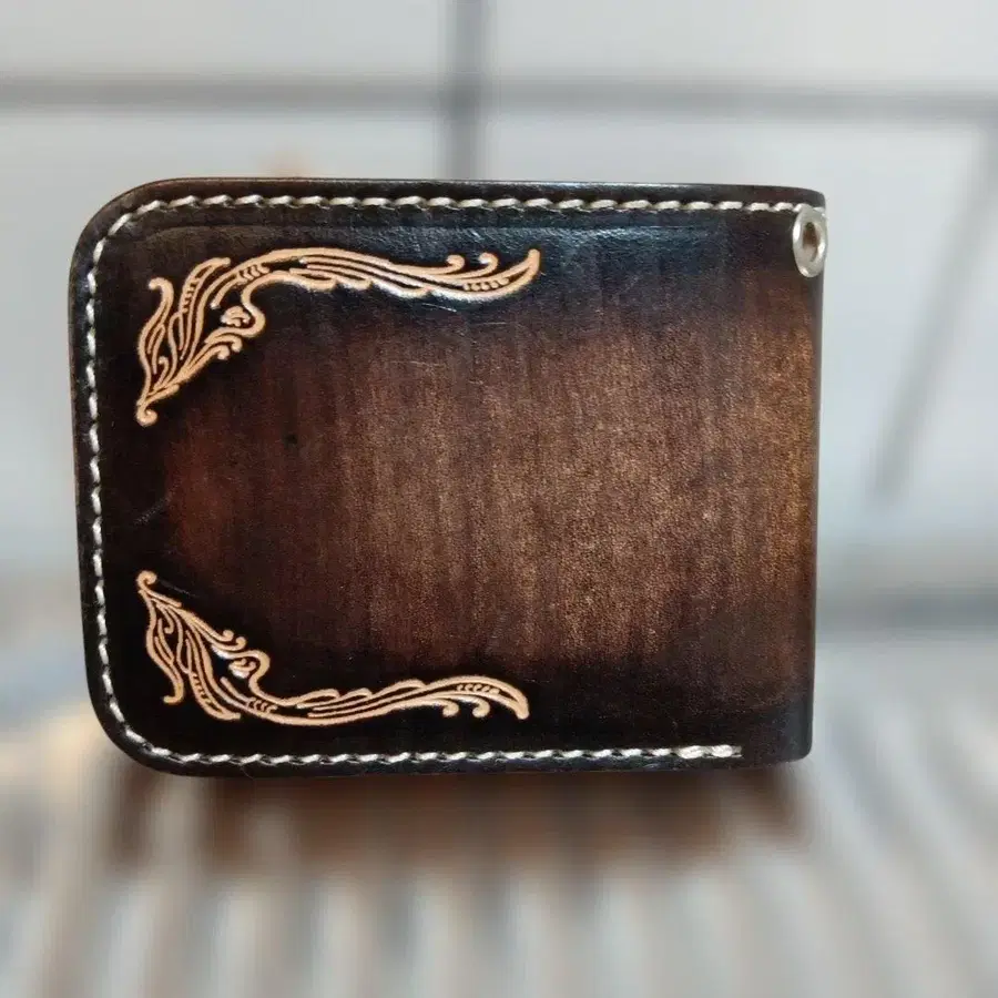 다크 브라운 조각 미니 지갑 가죽