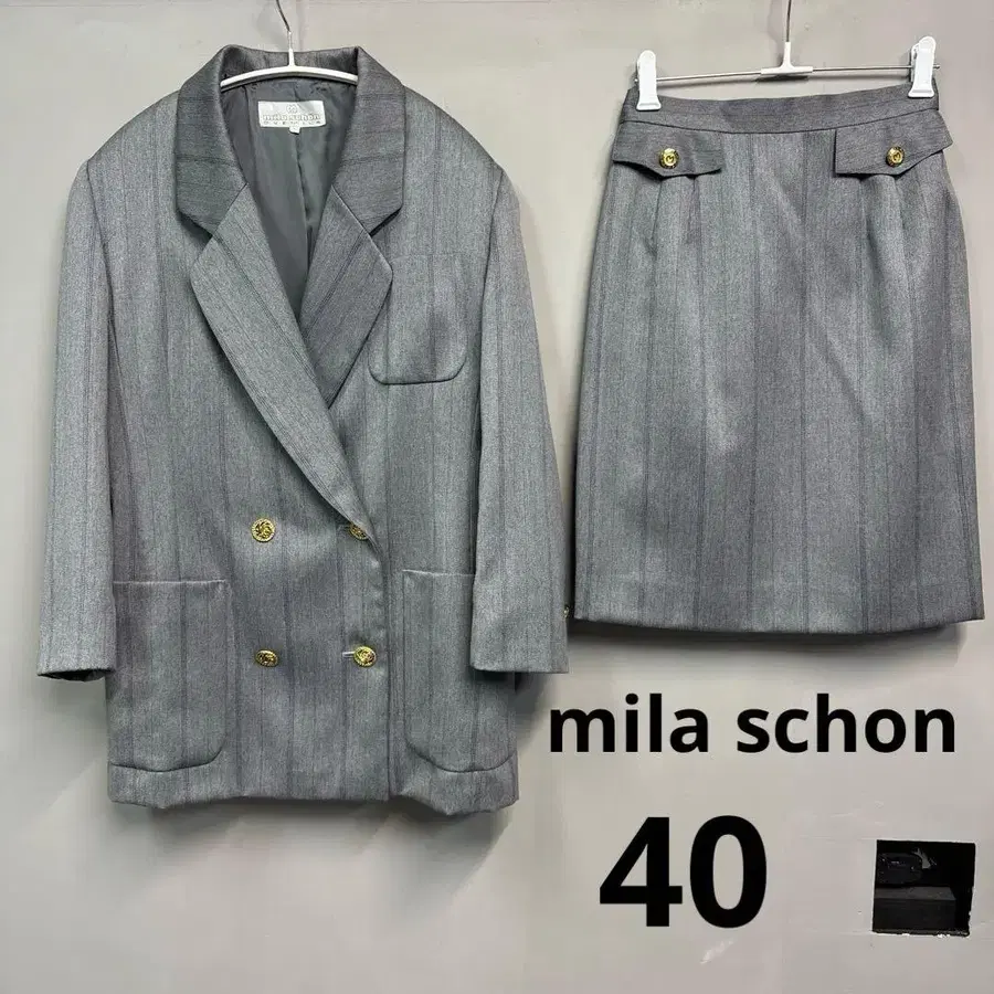 밀라 쇤 수트 셋업 40 그레이 스트라이프 스커트