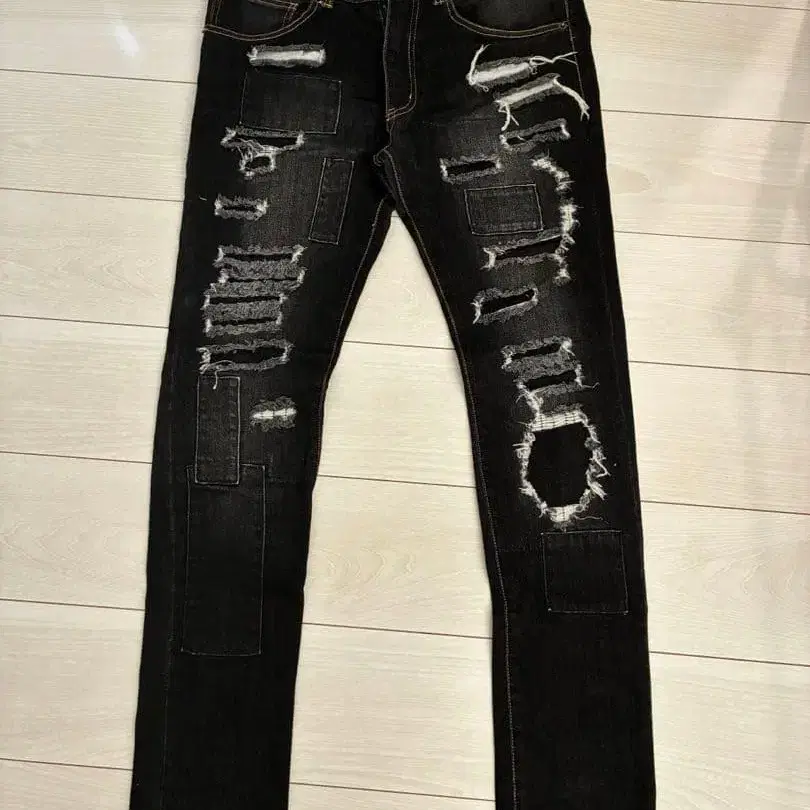 LEFLAH 데미지 가공 블랙 데님 L 사이즈