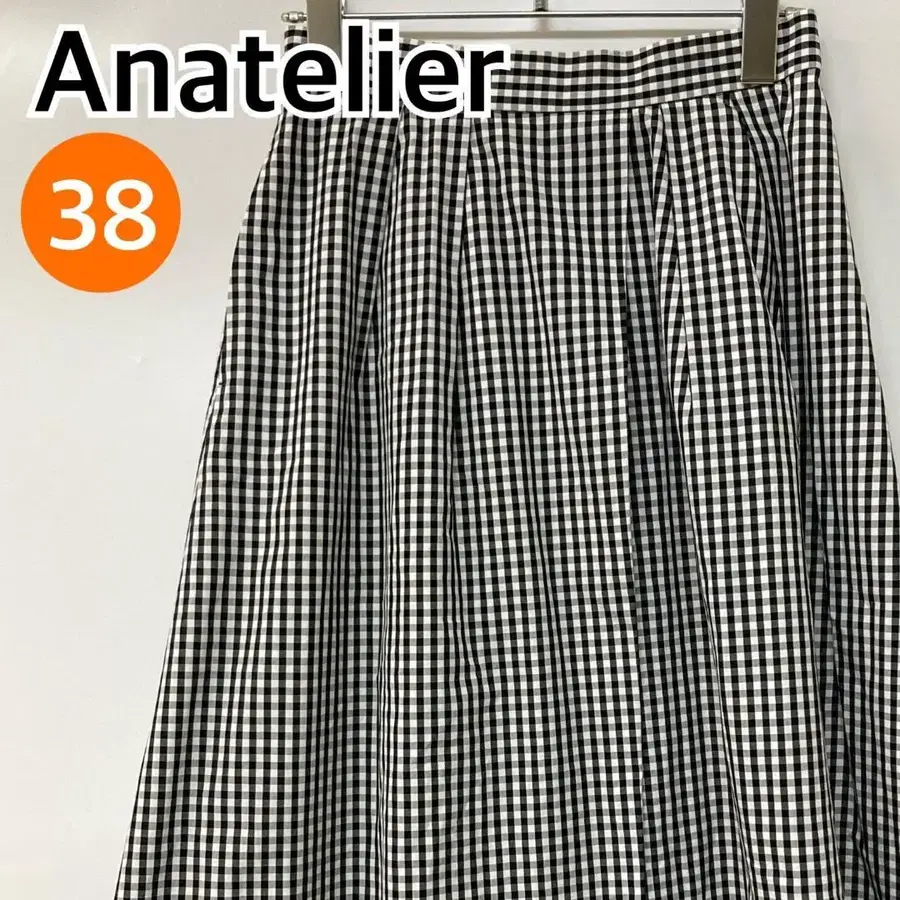 Anatelier 아나텔리어 스커트 플레어 스커트 깅엄 체크 패턴 화이트 블랙 여성용 38 사이즈 [ CB561 ]
