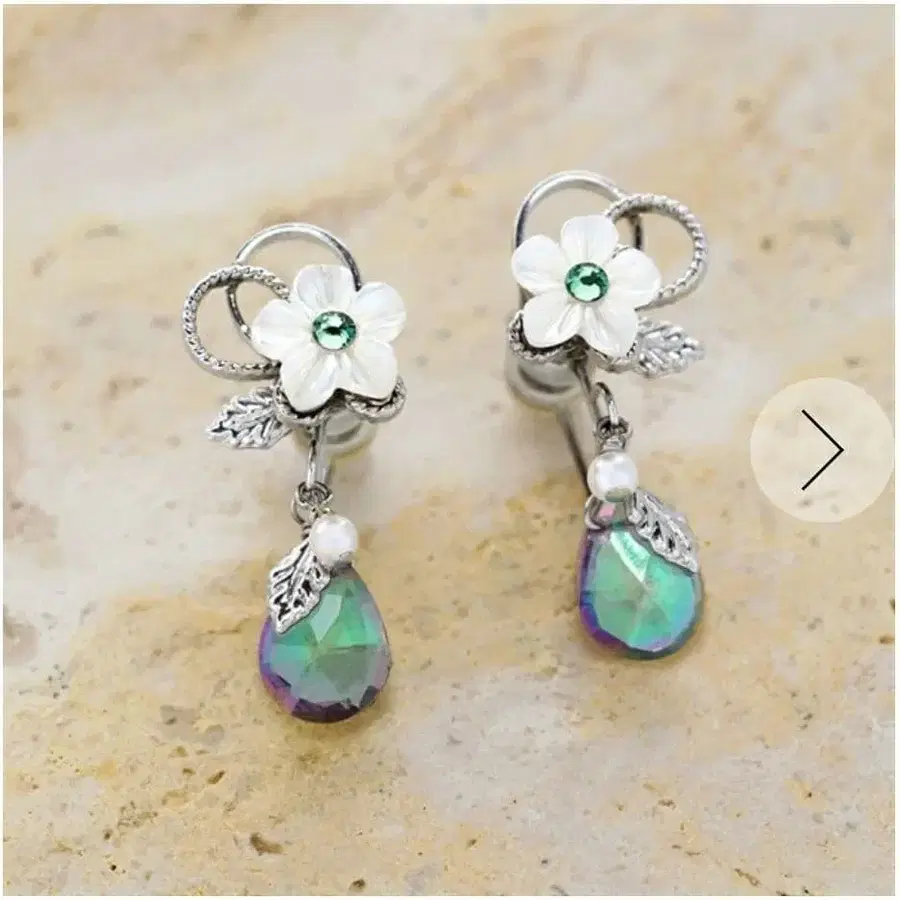 오로라 색으로 빛나는 [미스틱 토파즈]가 흔들리는 피아리입니다. 무색의 토파즈에 미스틱 코팅을 하여 보는 각도에 따라 신비롭게 색채를 바꾸는 [미스틱 토파즈]. 블루, 그린, 퍼플 등 다양한 색상이 복잡하게 반짝이며, 돌의 의미 그대로 [매혹적인 빛]을 발산합니다. 그런 매혹적인 돌에 순백의 작은 꽃, 작은 펄, 섬세한 장식을 조합하여 사랑스럽고 미스터리한 디자인으로 완성했습니다. 환상적인 색상이 얼굴 주변에 투명감을 더하는, 적당한 사이즈감으로 데일리로도 외출 시에도 어울리기 쉬운 아이템입니다.