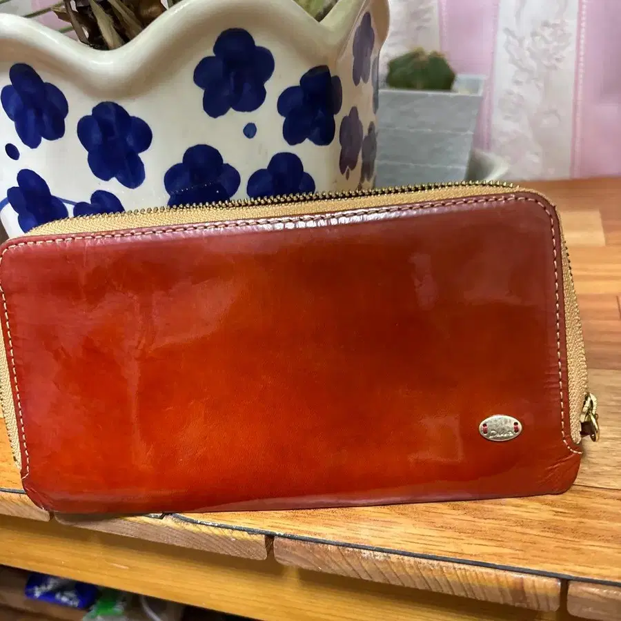 다코타의 장지갑 빨간색 에나멜 라운드 지퍼