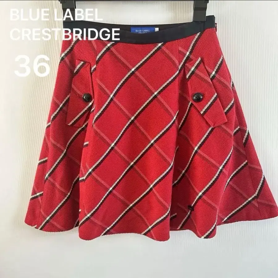 BLUE LABEL CRESTBRIDGE 빨간색 체크 플레어 스커트 36